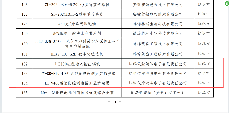 近日,安徽省工業(yè)和信息化廳正式公示了《安徽省新產(chǎn)品(2025年第三批)擬確認(rèn)名單》。經(jīng)過各地推薦、專家評審和廳長辦公會審議,蚌埠依愛消防電子有限責(zé)任公司的J-EI9041型輸入輸出模塊、JTY-GD-EI9010型點型光電感煙火災(zāi)探測器和EI-9400型消防控制室圖形顯示裝置三項創(chuàng)新產(chǎn)品成功入選,標(biāo)志著公司在智慧消防與電子技術(shù)領(lǐng)域的研發(fā)實力再獲權(quán)威認(rèn)可。
